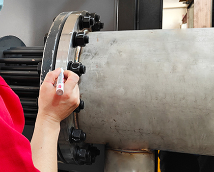 所有法蘭、閥門螺絲擰緊狀態(tài)采用全檢,檢測后使用打點筆打點再次確認,確保無漏檢、漏裝的異常現(xiàn)象發(fā)生。